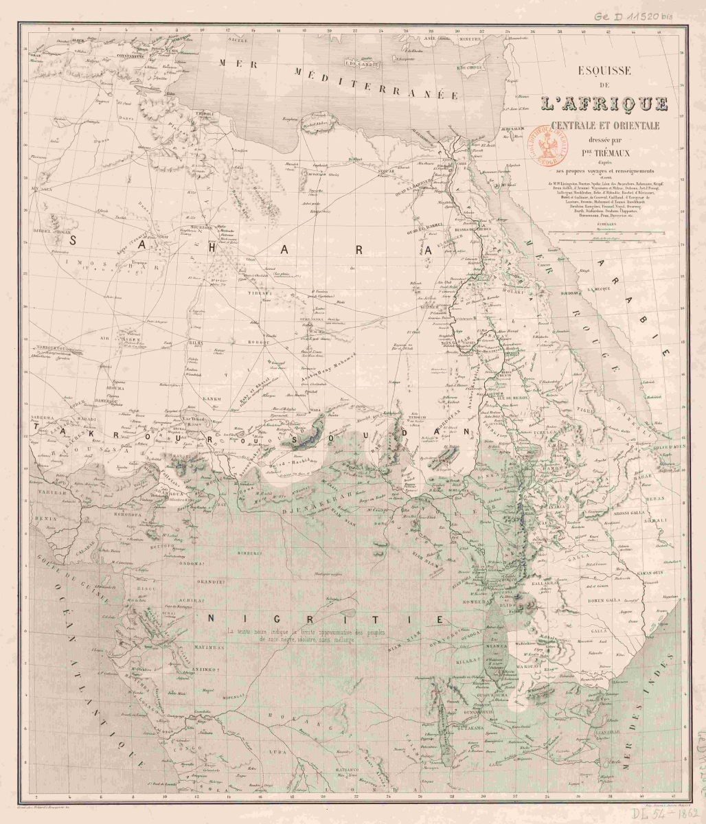 Image: French language map of Central and Eastern Africa (1862), by Pierre Trémaux. Original from the Bibliothèque nationale de France, via Wikimedia Commons
