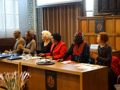 Photo right (from left to right): Chibuike Uche, Nancy Kula, Mirjam de Bruijn, Azeb Amha, Walter Nkwi Gam and Mayke Kaag.