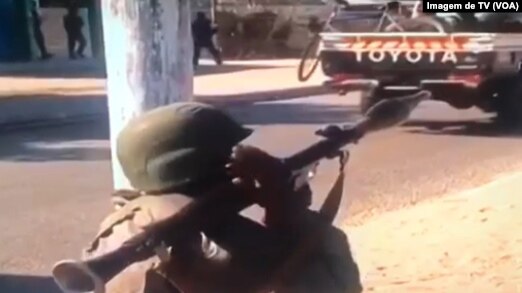 Image 1: “Al-Shabaab insurgent during the Battle of Mocimboa da Praia," Voice of America, 27 June 2020 (public domain in the U.S.)