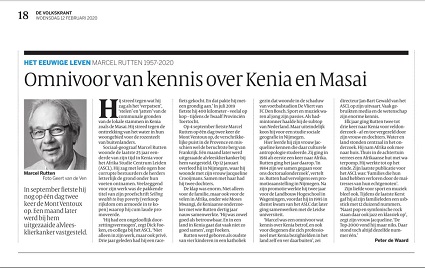 In Memoriam Marcel Rutten in de Volkskrant