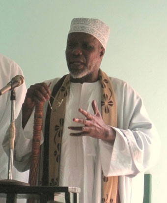 Photo: Cheikh Tidiane Gaye, during his last Korité sermon, in 2010, Louga, Senegal (Mansour Gaye, Wikimedia Commons).