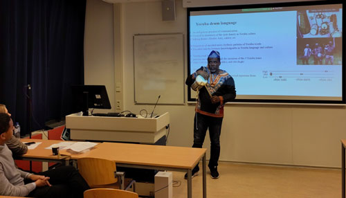 The role of language as a means to heal as well as to harm came back in several of the panels, as did the role of proverbs, poetry, persuasion and public rhetoric. For example, Olupemi Oludare (Utrecht University/University of Lagos) talked about and demonstrated street language in Yoruba Drum Language.