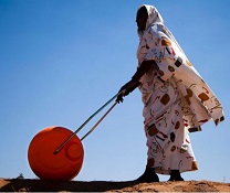 Credit lower photo: 'Water Roller' is a device for carrying water more easily and efficiently than traditional methods. Photo (cropped) by Albert Gonzalez Farran / UNAMID CC BY-NC-ND 2.0 via Flickr.